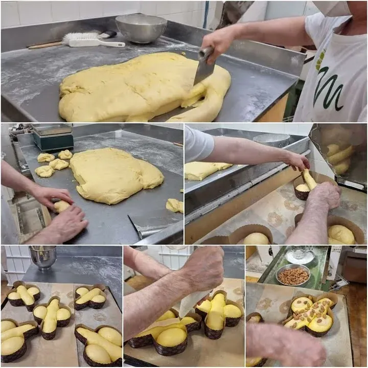 Come potete vedere il maestro dell'arte bianca per ottenere un buon prodotto artigianale deve rispettare tutti i tempi richiesti dalla colomba: aspettare tutte le fasi della lievitazione, le sue mani esperte sanno come toccare, tornire, tagliare la pasta affinché questa non subisca traumi nella lavorazione e sia squisita sulle vostre tavole.