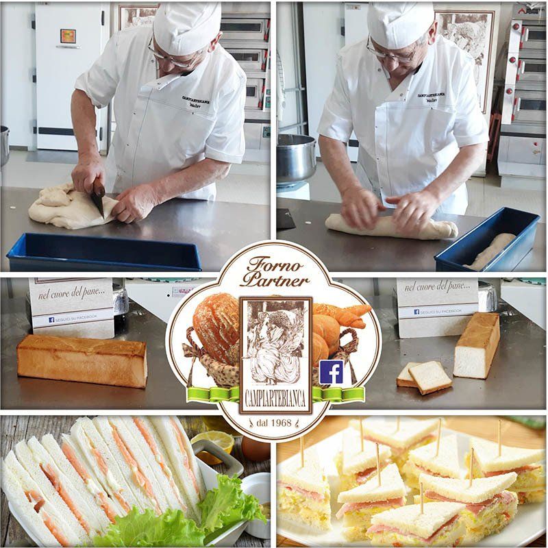 il maestro dell'arte bianca miscela sapientemente gli ingredienti principali: farina, latte e zucchero. Si lascia riposare l'impasto per almeno 15 minuti, poi lo spezza in tante palline di vario peso, perché al tuo panettiere di fiducia puoi chiedere la pezzatura per tartine, merende o buffet secondo le tue esigenze. Data la forma al pane viene messo a lievitare per 80/90 minuti in cella di lievitazione. Cotto a 200°C con leggero vapore ed è pronto per essere farcito con gli ingredienti che più ti piacciono. Buon appetito.