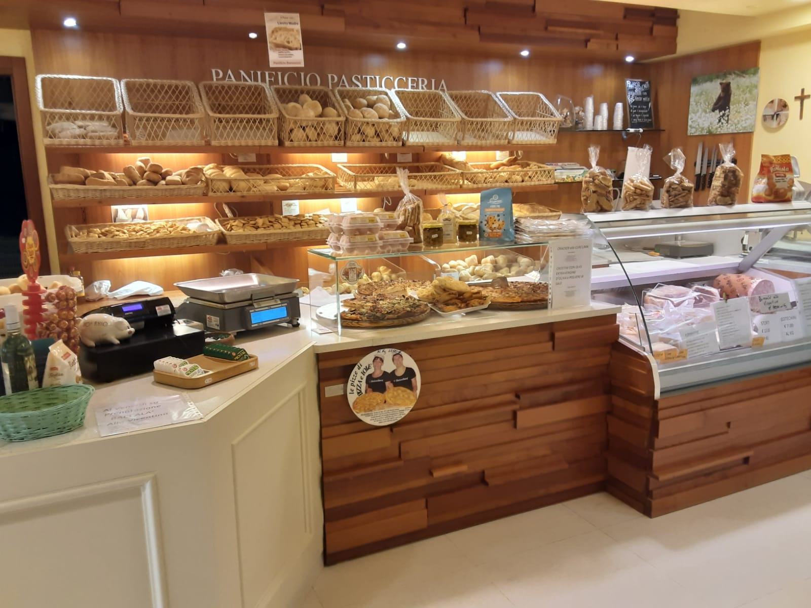 Vari tipi di pane artigianale: pane al riso, alla zucca, multicereale. Pasticceria da forno: frollini alla zucca, girelle, "brasadele de Pasqua", panettone, nadalin e colomba, "puoti de Santa Lucia", pane biscotto